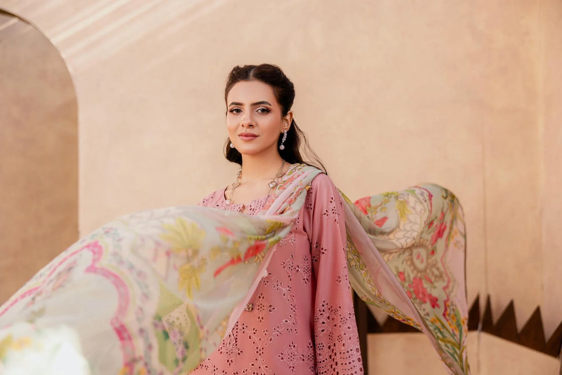 Experience the ultimate in luxury with this 3-piece outfit. Featuring a beautifully embroidered lawn shirt and cambric trousers, paired with a luxurious silk printed dupatta, you'll feel both elegant and comfortable all day. Perfect for any occasion, you'll love the high-quality fabrics and expert craftsmanship that Blossom is known for