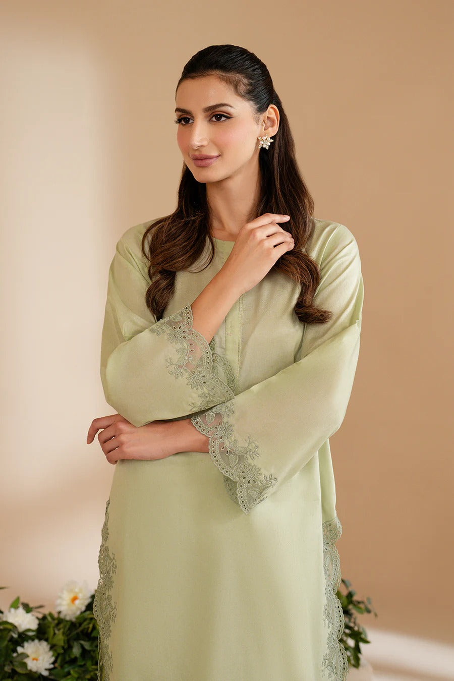✔ Soft pastel green tone, perfect for both casual and semi-formal occasions.